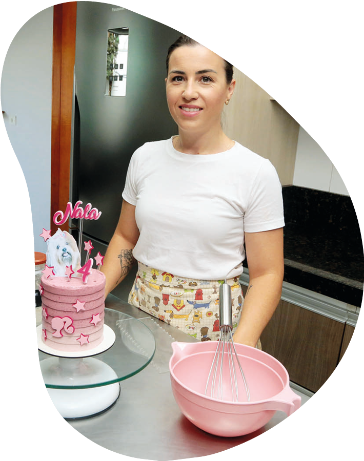 Na época, em 2019, Aline trabalhava em um escritório de representações comerciais e com a repercussão do bolo entre a família e os amigos, viu na confeitaria pet uma oportunidade para empreender.
